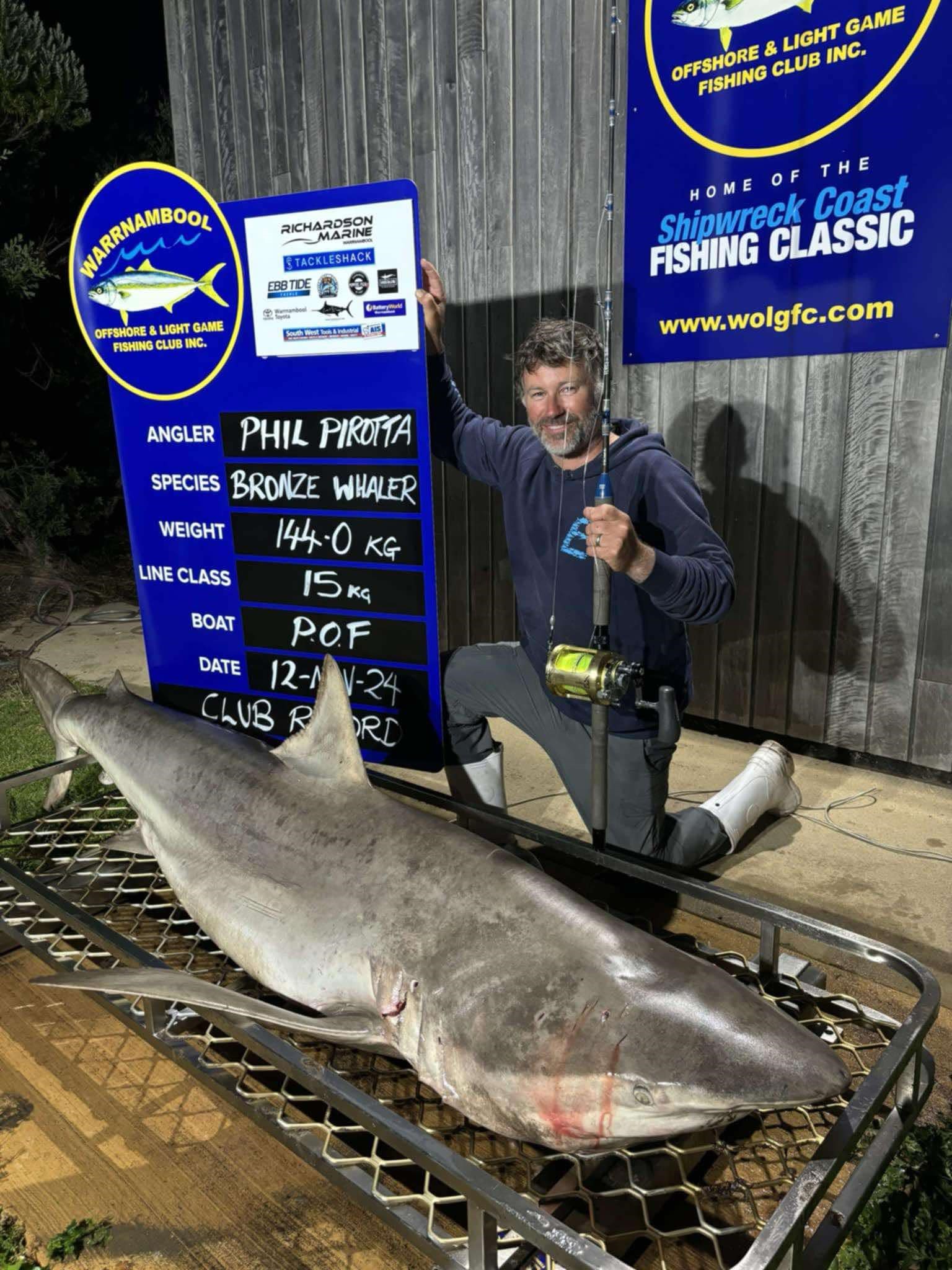 Phil Preotta caught this bronze whaler on November 11th 2024 with a Charlie Brown Circle Hook 8/0.